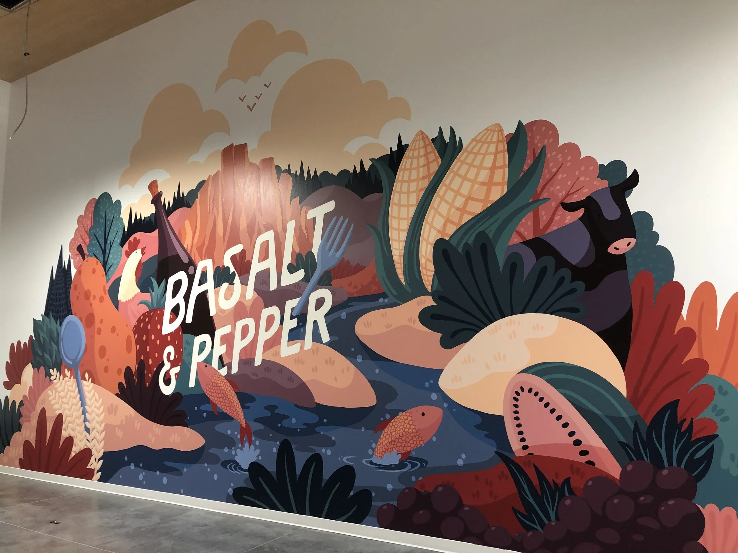 this project was painted in 2022 for an “undisclosed giant international tech company” (use your imagination) to celebrate the local agriculture and food scene of central oregon.